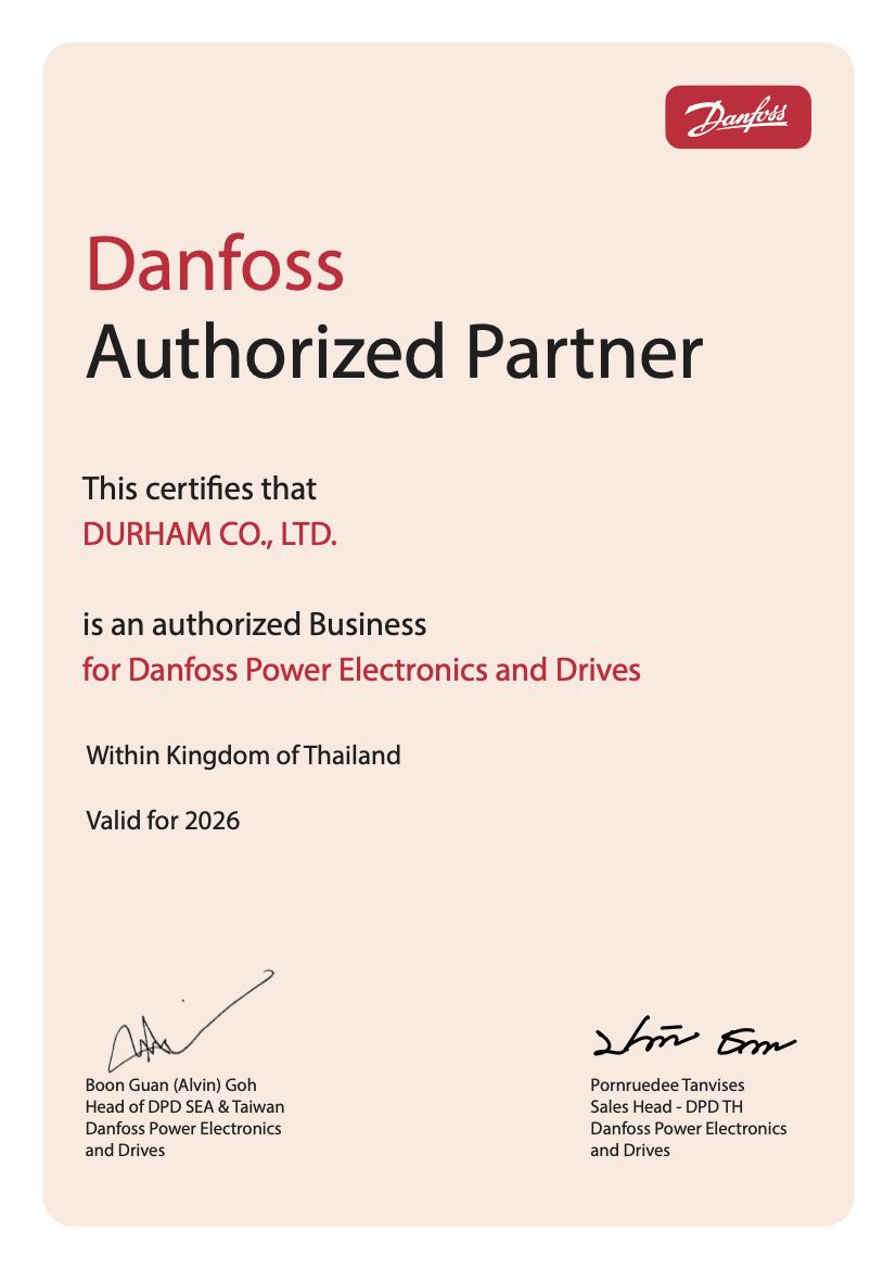 บริษัท ดูรัม จำกัด ได้รับการแต่งตั้งเป็นตัวแทนจำหน่ายสินค้าและอุปกรณ์ บริษัท แดนฟอส์ส อย่างเป็นทางการ เรียนรู้เพิ่มเติม Product VLT® Soft Starter MCD 600 อ่านเพิ่มเติม VLT® Midi Drive FC 280 อ่านเพิ่มเติม VLT® Micro Drive FC 51 อ่านเพิ่มเติม ดูทั้งหมด ติดต่อ 02-961-6424094-435-8542 our social media Youtube ที่อยู่บริษัท 88/114 หมู่ 2 ตำบลบ้านใหม่ อำเภอปากเกร็ด จังหวัดนนทบุรี 11120